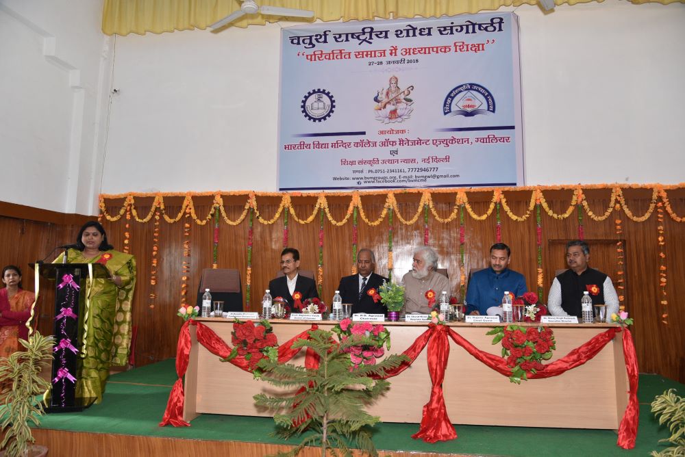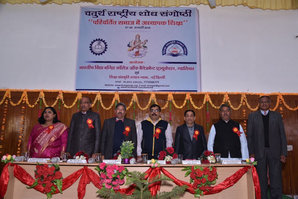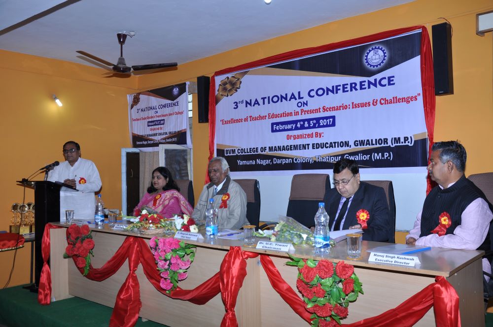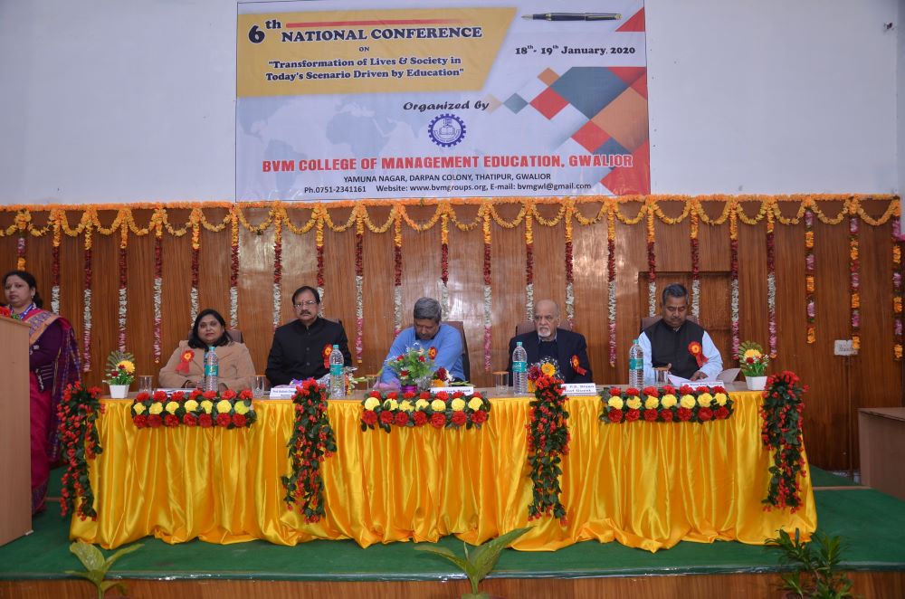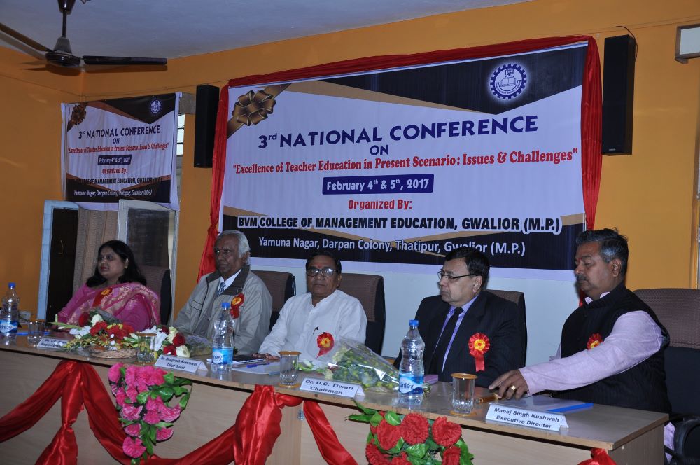 The Inaugural Session was forward with starting the worship of maa saraswati, The chief guest was Prof. P.S. Bisen, Former Vice Chancellor, Jiwaji University, Gwalior (M.P). The Keynote speaker was Dr. Kailash Chandra Vashistha (Dean& Head, Dept. - Foundations of Education, Dayalbagh Education Institute (Deemed University), Dayalbagh, Agra (U.P) The session was chaired by Prof. Vivek Bapat (Dean, Faculty of Education, Jiwaji University, Gwalior (M.P.). The Chief Patron Mrs. Savita Singh, Chairperson & Mr. Manoj Singh Kushwah, Group Executive Director, Patron Mr. Abhishek Jain, Executive Director & Dr. M.R. Sahu, Principal (Management) and Conference Chairperson Dr. Deepika Bhatnagar Principal (Education) Conference Convener Dr. Manju Tomar, Assistant Professor & Conference Co-Convener Mr. Pradeep Jha, Assistant Professor BVM College of Management Education Gwalior(M.P).