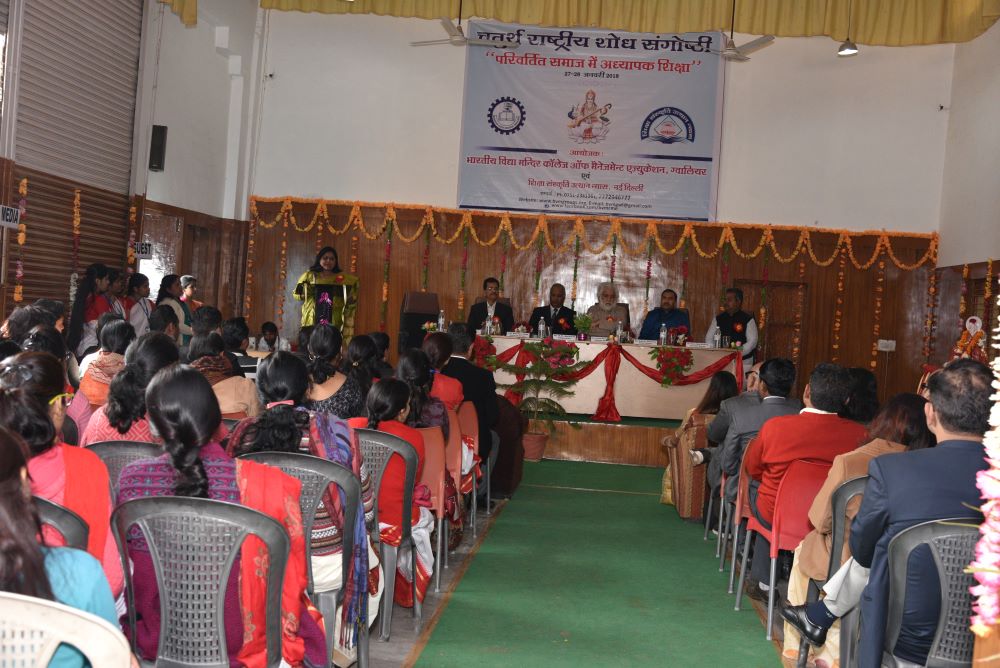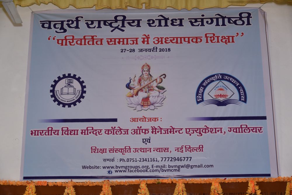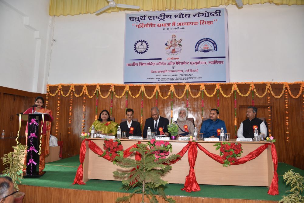 The 4th National Conference on 4th "परिवर्तित समाज में अध्यापक शिक्षा" was organized by BVM College of Management Education. It was a two-day national conference. A total of 387 participants registered for the conference. Approximately 176 abstracts were received, of which 122 were selected for paper submissions. Ultimately, 105 papers were received, and 85 were selected for publication in the International Journal “Naveen Shodh Sansar” (An International Refereed / Peer Review Journal Impact factor- 5.610) having E-ISSN 2394-3793Volume 1,April 2018.