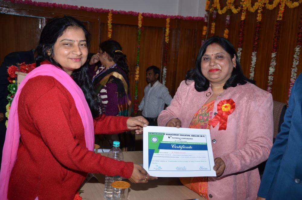 The Valedictory Session was forward with starting the worship of maa saraswati. The chief guest was Prof. R.K. Upadhyay Principal, Govt PG College of Education, Gwalior (M.P). The Keynote speaker was Dr. Sudha Mishra Assistant Professor, ASCENT, Amity University Gwalior (M.P). The session was chaired by Prof. D.D Agarwal, Director of College Development Council, Jiwaji University, Gwalior (M.P). The Chief Patron Mrs. Savita Singh ,Chairperson & Mr. Manoj Singh Kushwah, Group Executive Director, Patron Mr. Abhishek Jain, Executive Director & Dr. M.R. Sahu, Principal (Management) and Conference Chairperson Dr. Deepika Bhatnagar Principal (Education) Conference Convener Dr. Shruti Chavhan Assistant Professor BVM College of Management Education Gwalior.