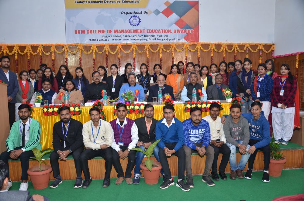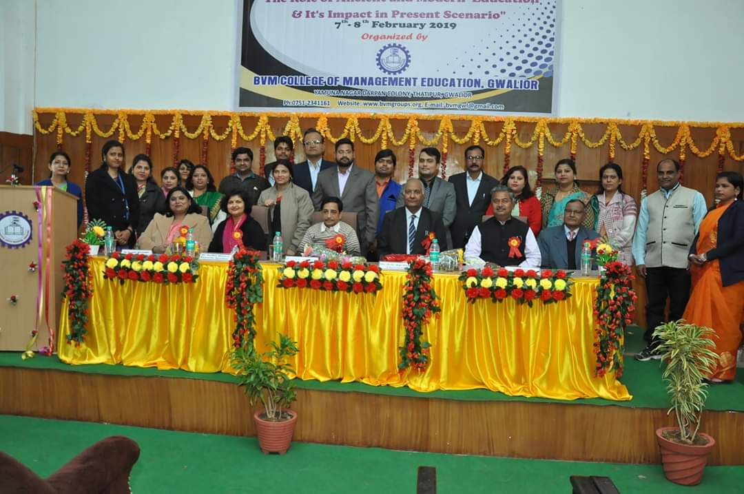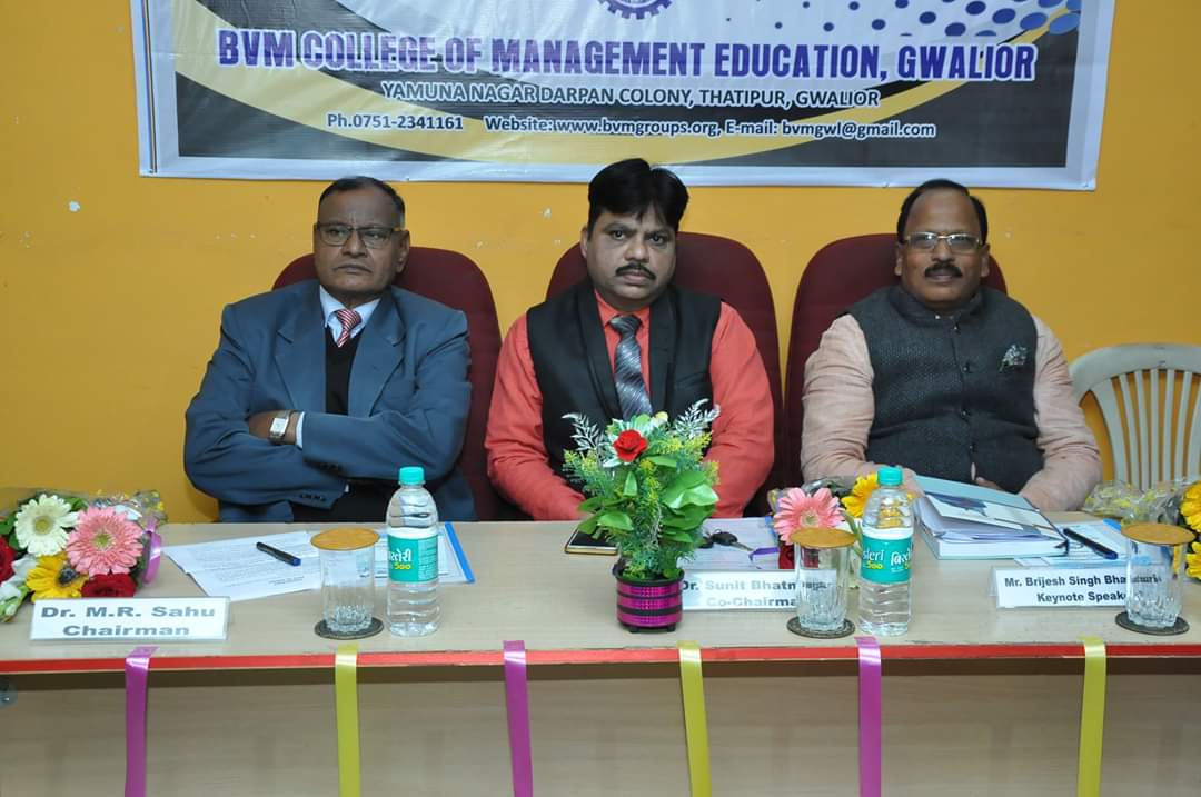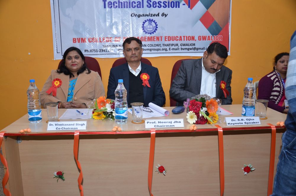 The Inaugural Session was forward with starting the worship of maa saraswati, The chief guest was Prof. P.S. Bisen, Former Vice Chancellor, Jiwaji University, Gwalior (M.P). The Keynote speaker was Dr. Kailash Chandra Vashistha (Dean& Head, Dept. - Foundations of Education, Dayalbagh Education Institute (Deemed University), Dayalbagh, Agra (U.P) The session was chaired by Prof. Vivek Bapat (Dean, Faculty of Education, Jiwaji University, Gwalior (M.P.). The Chief Patron Mrs. Savita Singh, Chairperson & Mr. Manoj Singh Kushwah, Group Executive Director, Patron Mr. Abhishek Jain, Executive Director & Dr. M.R. Sahu, Principal (Management) and Conference Chairperson Dr. Deepika Bhatnagar Principal (Education) Conference Convener Dr. Manju Tomar, Assistant Professor & Conference Co-Convener Mr. Pradeep Jha, Assistant Professor BVM College of Management Education Gwalior(M.P).